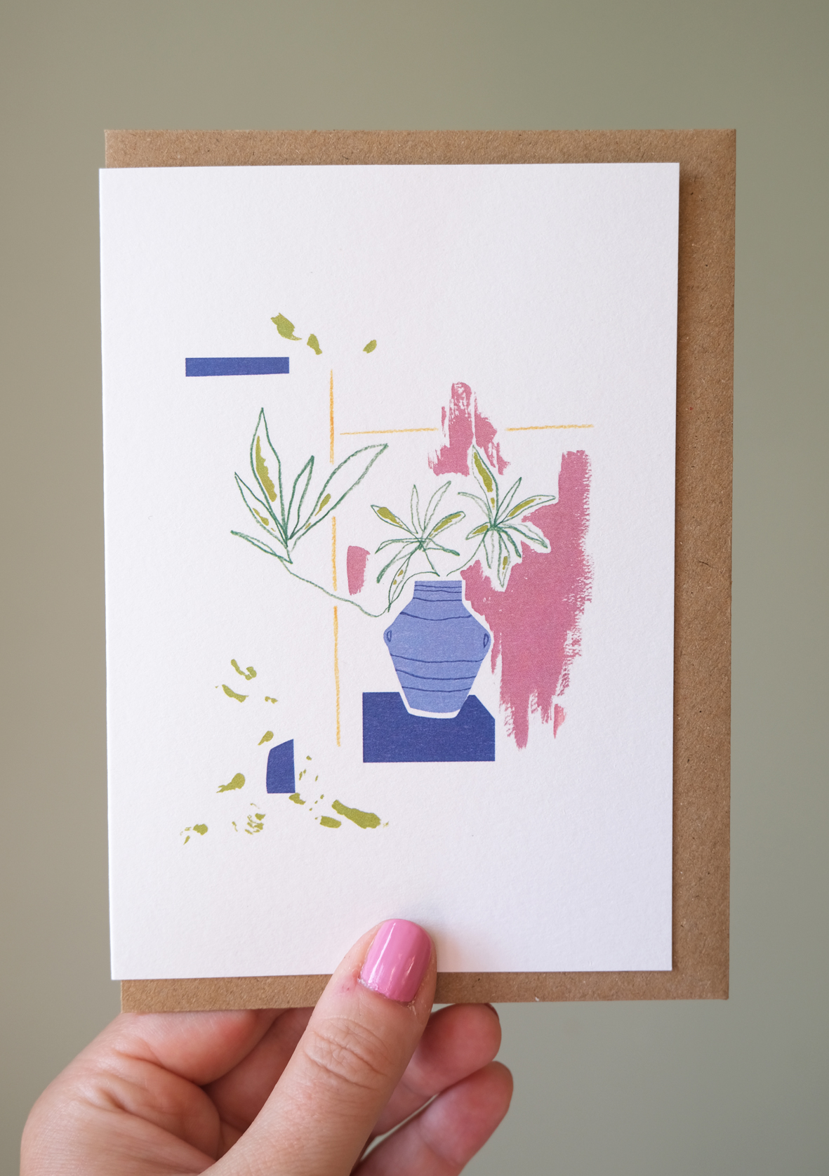 Individual card with kraft envelope, printed on 250gsm delicate textured perlino cotton paper.