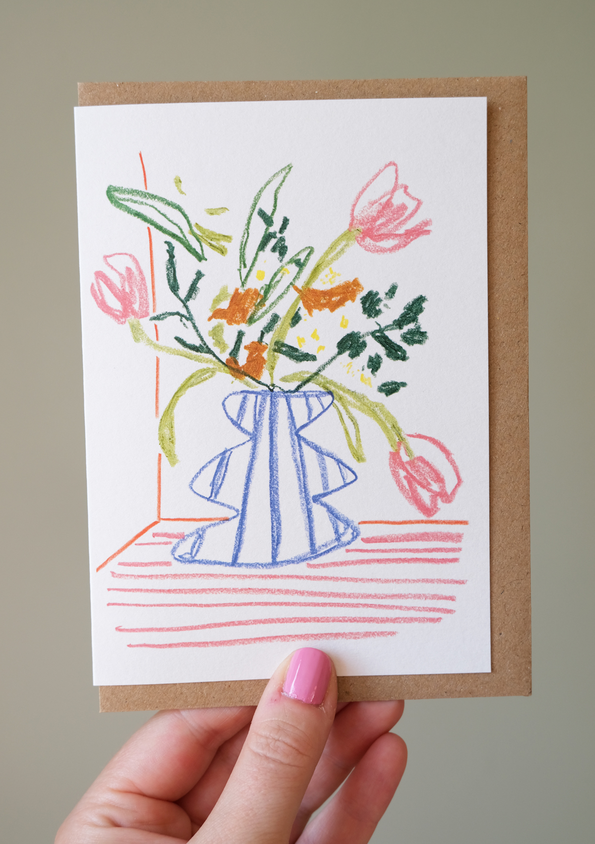 Individual card with kraft envelope, printed on 250gsm delicate textured perlino cotton paper.